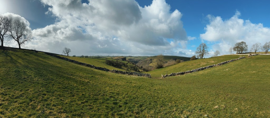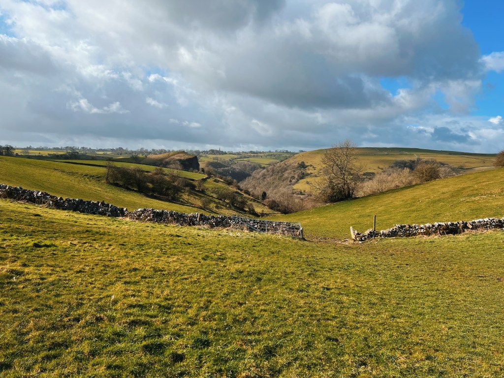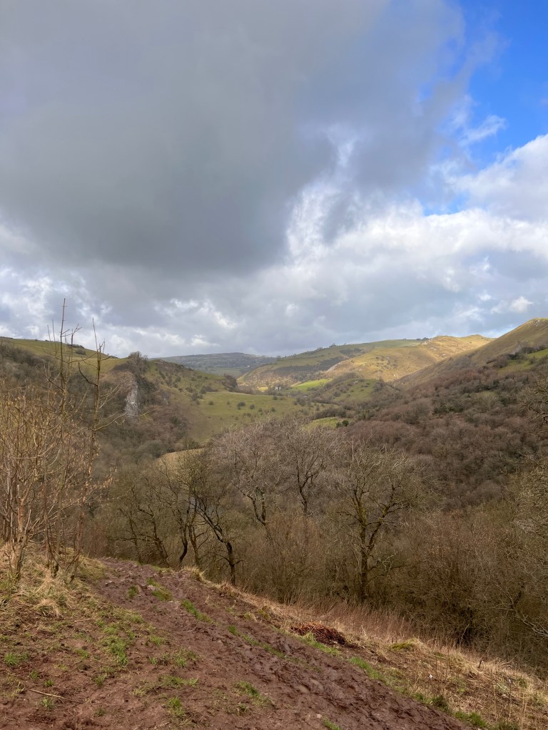 We looked out across the Manifold valley and decided to push on back towards the vans as lunch was seeming a really pleasant idea, we headed down the steep and very slippery steps towards the base of the valley, where we decided to head slightly off piste and head up a footpath that lead straight through a farmers field. fortunately this path was grassy and not too slippery and with it being almost arrow straight back to the vans, it was a great choice! As we climbed up the hill, all of us feeling the first promise of an impending spring as the sun bathed is in its rays for a short while as we all removed our jackets and felt the Vitamin D flooding in, for the first time in months!