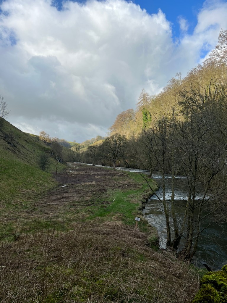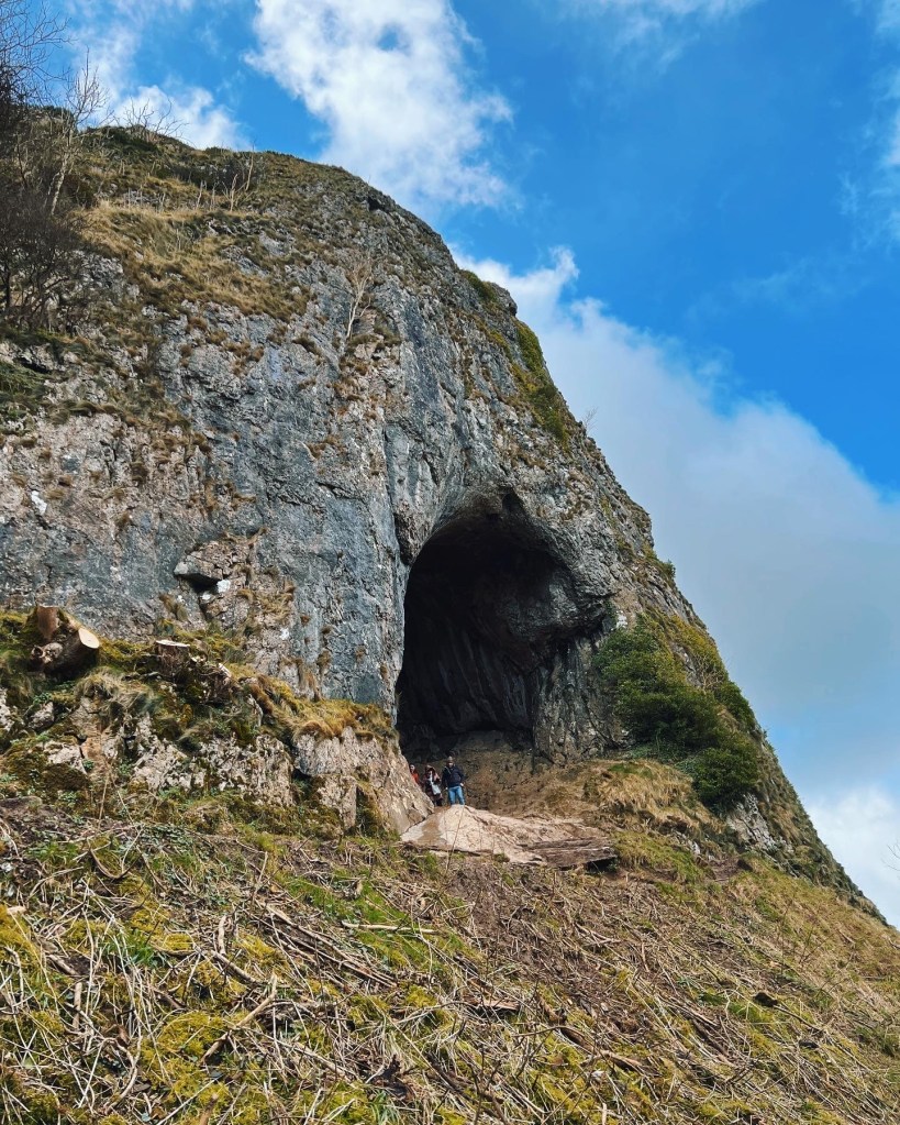 We were really lucky with the weather as we snaked our way down the drystone wall clad roads and soon we came to our meeting point in the village of Wetton where we set off on a 5 mile route to Thor’s Cave including the Manifold Valley (Walk guide link). As we made our way downhill we could see a bold and tall rock off in the distance, seemingly different to everything else in the surrounding landscape and as we got closer we soon realised the main event wasn’t too far away!